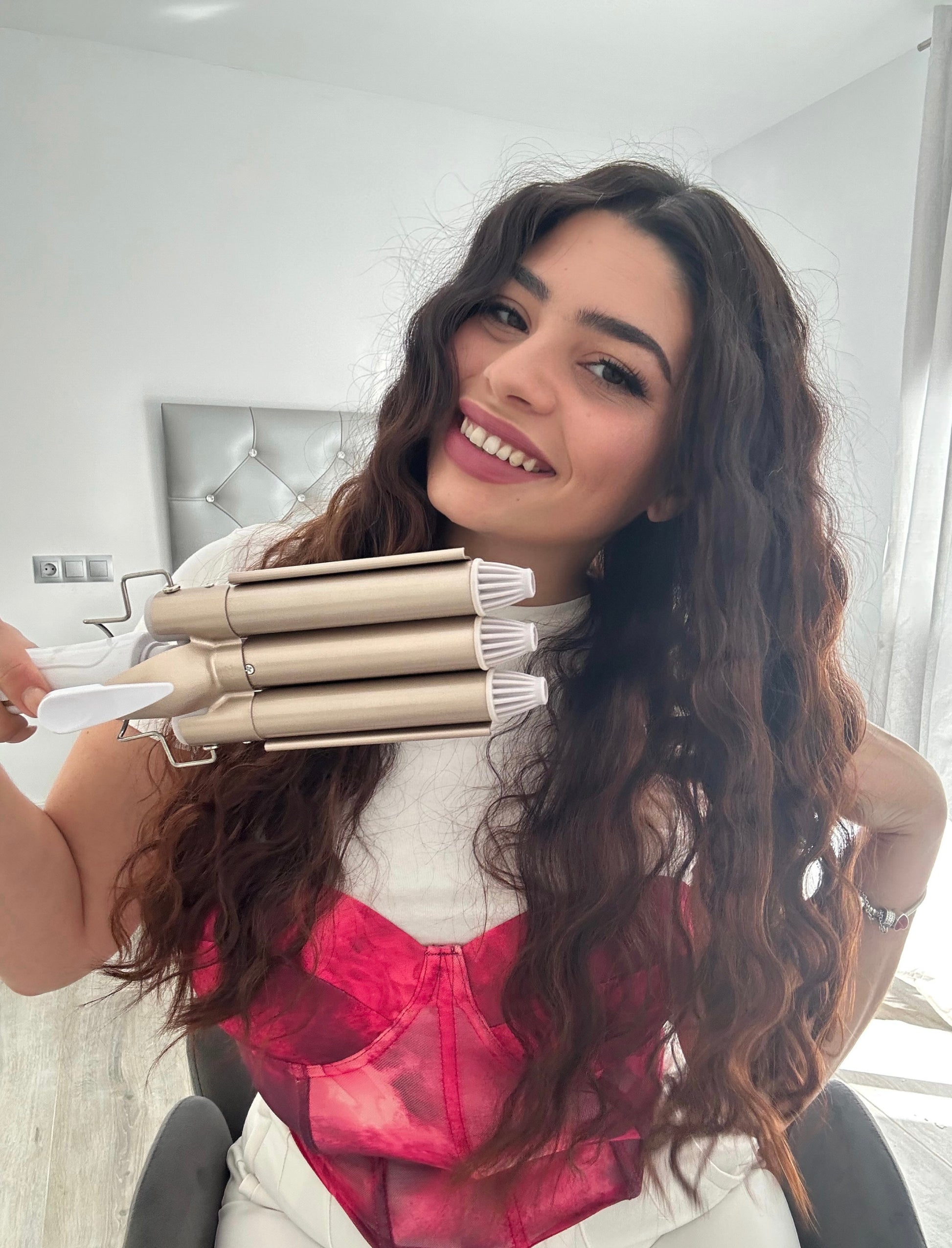 Rizador de pelo profesional, de hierro de cerámica, triple barra, estilizable de pelo, herramienta de peinado para profesionales y particulares 110v-220v.