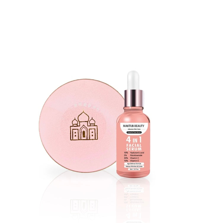 Combinación de la increíble manteca de Karité africana 100% cruda y sin refinar, proviene de África (Ghana), es apta para rostro, piel y cabello. Junto con el serum facial 4 en 1 , compuesto por vitamina C, vitamina e , ácido hialurónico y niacinamida.