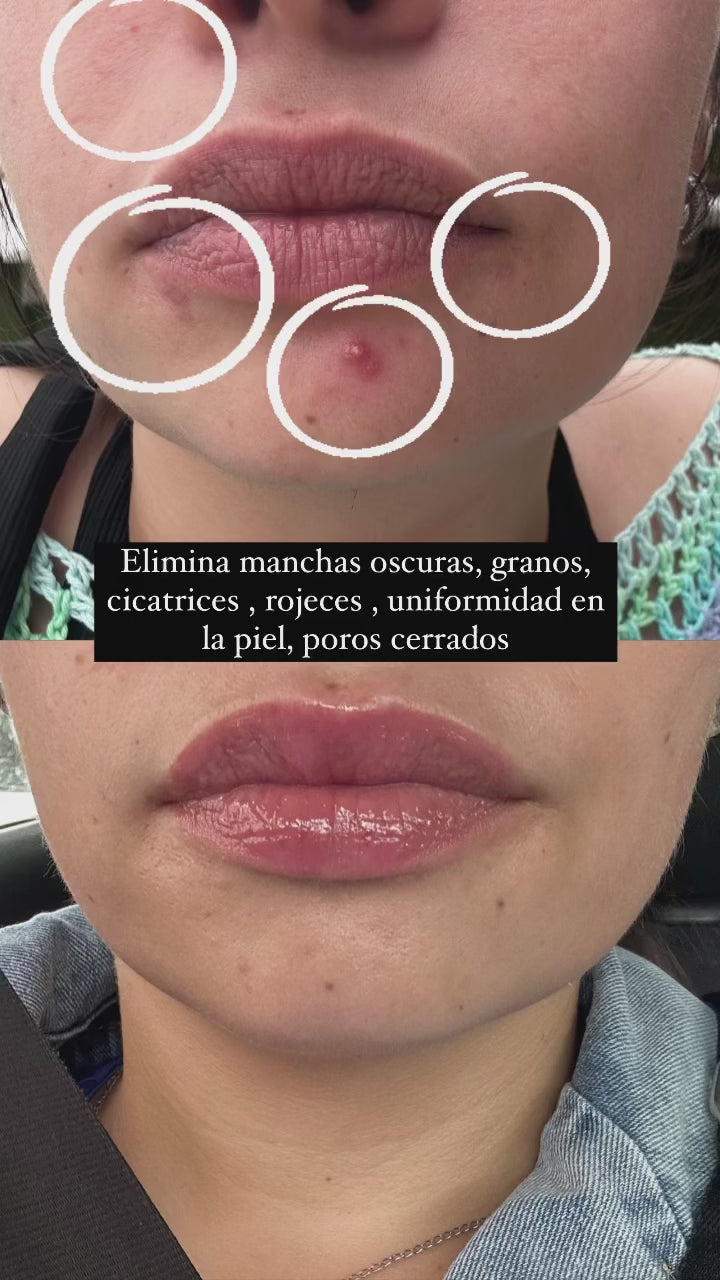 Le dará un GLOW up a tu rostro, reparándola, rellenándolas y nutriéndola, una piel suave y libre de imperfecciones, aspecto luminoso y joven. Elimina manchas , cicatrices, rojeces y líneas de expresión.