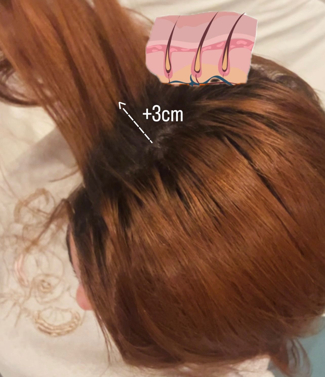 Tu cabello comenzará a cambiar desde hoy, tendrás más brillo, suavidad y volumen. Pelitos nuevos y relleno de zonas despobladas en 2 meses que es lo que dura el tratamiento, después puedes seguir incluyéndolo en tu rutina diaria sin problema.